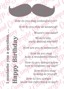 I had never really jumped onto the whole mustache bandwagon, but I love the funny sentiments in this set! It's a must-have for making guy cards (especially for my dad and father-in-law...they both love cheesy jokes/puns!) Here's the whole set: